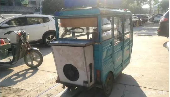 一个偶然的机会,让他萌发了在这辆三轮车上安装空调的想法。